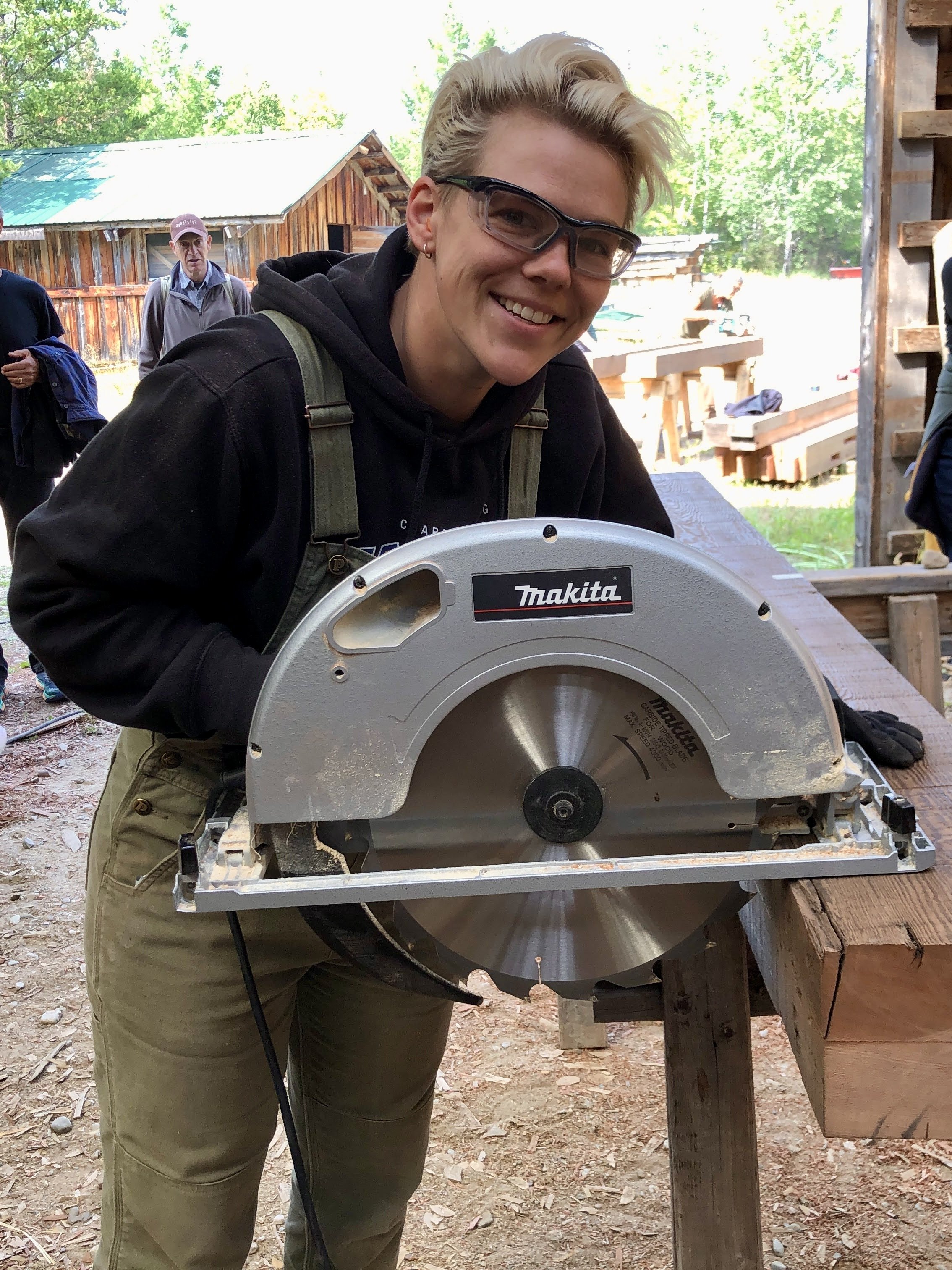 Jenna Pollard (she/her) has taught timber frame workshops in Minnesota, Washington, and Arizona, and has been timber framing since 2010. She has built or assisted with building over a dozen timber frames, from her own small cabin to large pavilions for community gatherings. Her passion for teaching has led her to offer women’s timber framing courses as a way to grow the number of women in the trades and provide a supportive learning environment for other women. She is excited to teach this timber framing class for FLINTA-identifying folks, and provide mentorship for students to learn and build skills in a safe and supportive environment. Jenna identifies as lesbian and lives with her partner in northern Minnesota.